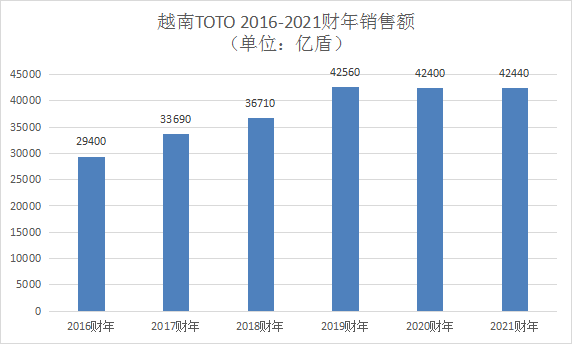 數(shù)據顯示,TOTO近年在越南的銷售額整體平穩(wěn)。2019財年突破40000億盾(約人民幣12.00億元)后,2020、2021財年均在42000億盾以上,其中2021財年還是越南疫情反彈較嚴重的一年,這一年TOTO在越南的營業(yè)利潤大幅減少65%。不過,正如TOTO建設第四工廠不僅為了越南市場,近年越南工廠的產品也大量出口海外市場。以2021財年為例,這一年TOTO在越南的銷售額為42440億盾(約人民幣12.73億元),其中外部顧客銷售額達到14390億盾(約人民幣4.32億元),占比超3成。